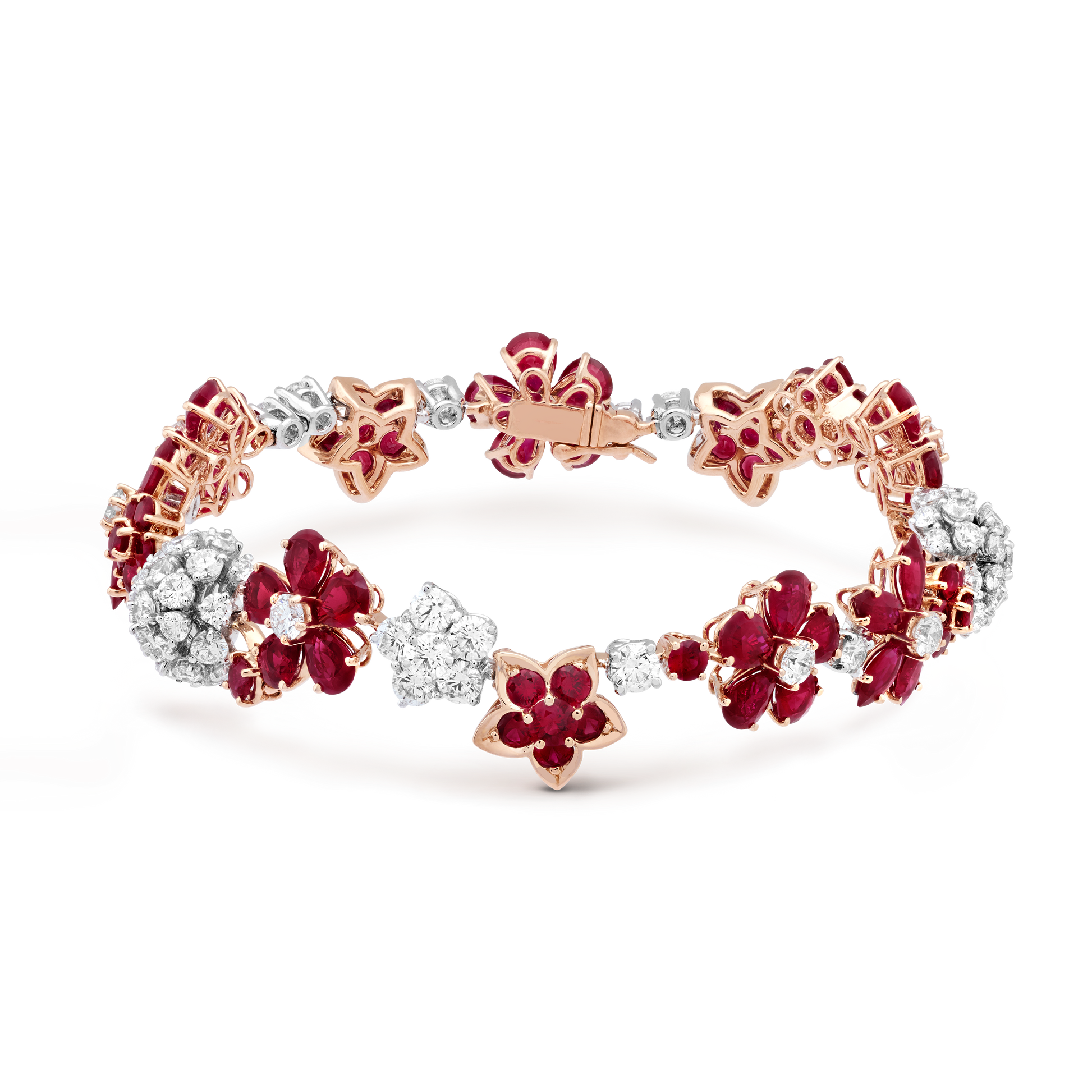 הצמיד שואב השראה מפרחי השדה, המסמלים חופש, יופי והתחדשות. השילוב בין הזהב הוורוד, הזהב הלבן, היהלומים והרובי יוצר יצירת אומנות שמתאימה לנשים שאוהבות לבלוט ולשדר יוקרה טבעית.